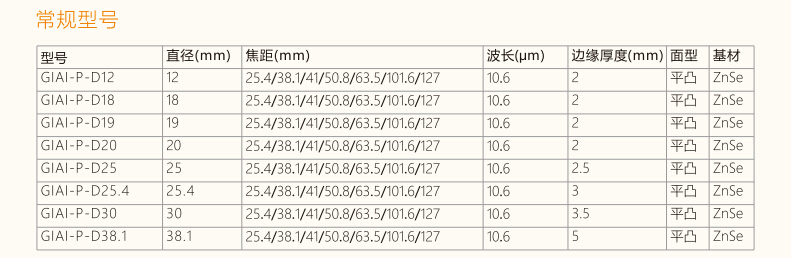 型 號:硒化鋅聚焦鏡