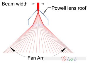 鮑威爾棱鏡扇形角的寬度是玻璃和屋頂角度的折射率的函數(shù)。的屋頂陡和較高的折射率,更廣泛的扇形角和時間越長,線對于給定的投影距離。小風(fēng)扇角度通常使用溫和的光學(xué)玻璃,N = 1.5,折光指數(shù)。大型風(fēng)機(jī)的角度,最好具有高折射率玻璃制成,N = 1.8,或更高,以盡量減少屋頂?shù)妮^陡的角度Laserline的光學(xué)加拿大股6毫米直徑和直徑8.9毫米透鏡1°,5°,10°,15°,20°,30°,45°,60°,75°和90°。組委會還可以制造定制的風(fēng)扇角度低NRE成本。
