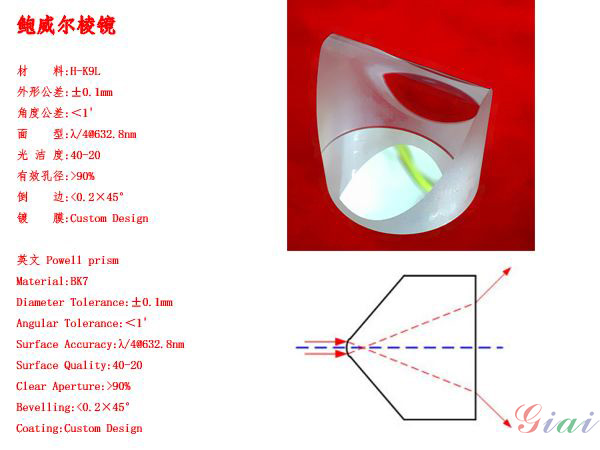 鮑威爾棱鏡是一種光學(xué)劃線棱鏡,它使激光束通過后可以最優(yōu)化地劃成光密度均勻、穩(wěn)定性好、直線性好的一條直線。